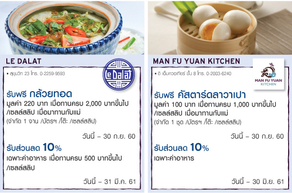 • โปรดตรวจสอบเงื่อนไข ณ ร้านค้าที่ร่วมรายการก่อนเข้าใช้บริการ