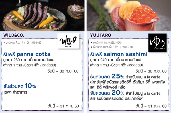 เติมความสุขในช่วงเทศกาลวันแม่ รับส่วนลดสูงสุด 10% ณ 8 ร้านอาหารที่ร่วมรายการ จากบัตรเครดิตซิตี้