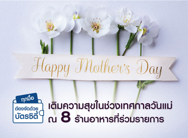 เติมความสุขในช่วงเทศกาลวันแม่... รับส่วนลดสูงสุด 10% ณ 8 ร้านอาหารที่ร่วมรายการ จากบัตรเครดิตซิตี้