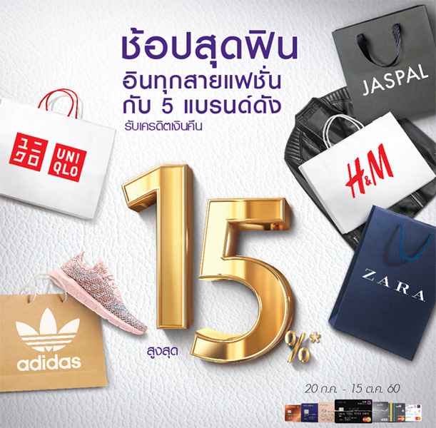 ช้อปสุดฟิน อินทุกสายแฟชั่น กับ 5 แบรนด์ดัง รับเครดิตเงินคืนสูงสุด 15% จากบัตรเครดิตไทยพาณิชย์