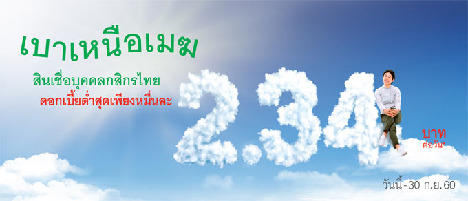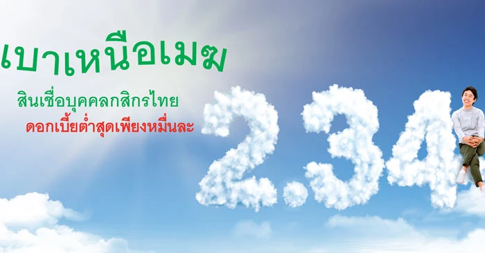 สินเชื่อบุคคลกสิกรไทย ดอกเบี้ยต่ำสุดหมื่นละ 2.34 บาทต่อวัน
