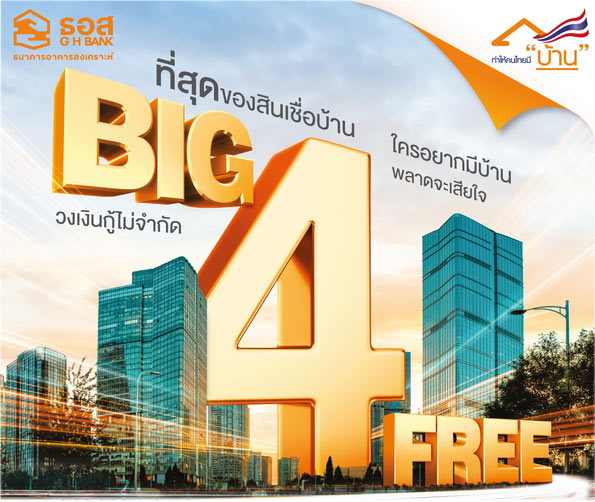 ที่สุดของสินเชื่อบ้าน Home For All วงเงินกู้ไม่จำกัด พร้อม BIG 4 FREE จาก ธ.อาคารสงเคราะห์