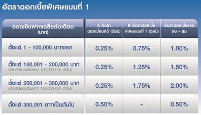 | ช่วงเงินฝาก | อัตราดอกเบี้ย |