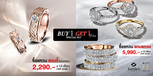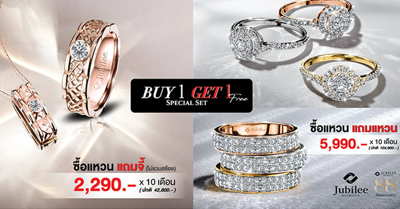ผ่อน 0% Jubilee Diamond พิเศษ ซื้อ 1 ฟรี 1 พร้อมรับเงินคืนสูงสุด 8,000 บาท จากบัตรเครดิตยูโอบี