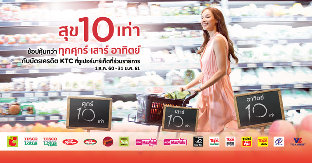สุข 10 เท่า ช้อปคุ้มกว่า ทุกศุกร์ เสาร์ อาทิตย์ ณ ซูเปอร์มาร์เก็ตที่ร่วมรายการ กับบัตรเครดิต KTC