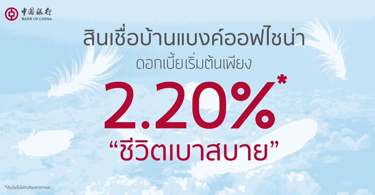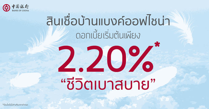 สินเชื่อบ้านแบงค์ออฟไชน่า เริ่มต้น 2.20% ทำให้ชีวิตคุณเบาสบาย วันนี้ - 31 ธันวาคม นี้เท่านั้น!!