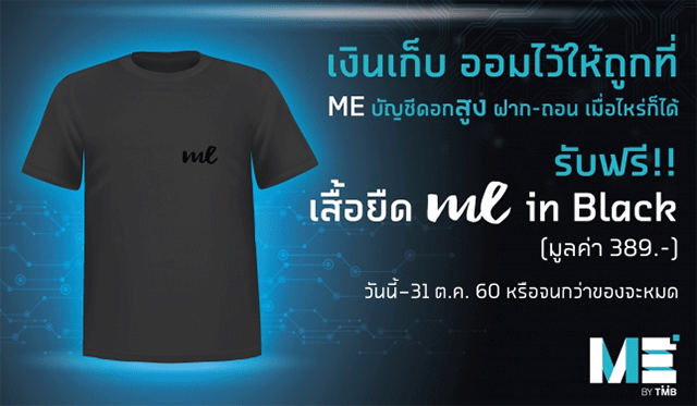 โปรดีจาก ME by TMB ลูกค้าปัจจุบัน และลูกค้าใหม่ รับฟรี เสื้อยืด ME in White, ME in Black