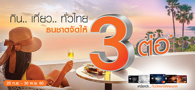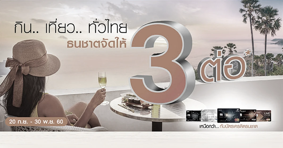 กิน เที่ยว ทั่วไทย.. กับบัตรเครดิตธนชาต จัดให้ 3 ต่อ ทั้งส่วนลด เงินคืนสุดคุ้ม พร้อมคะแนนสะสมสูงสุด 11 เท่า