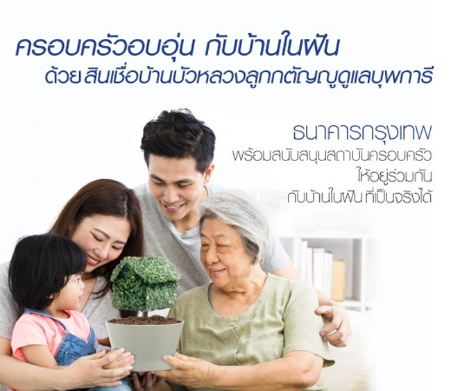 ธนาคารกรุงเทพ พร้อมสนับสนุนสถาบันครอบครัวให้อยู่ร่วมกันกับบ้านในฝันที่เป็นจริงได้ ด้วยสินเชื่อบ้านบัวหลวงลูกกตัญญูดูแลบุพการี