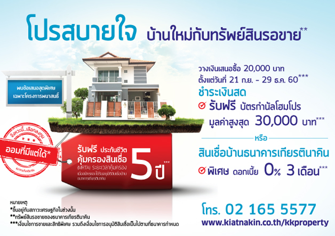 โปรสบายใจ บ้านใหม่กับทรัพย์สินรอขายธนาคารเกียรตินาคิน วันนี้ - 29 ธ.ค. 60