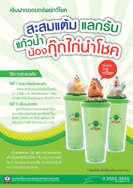 ธ.ก.ส. เงินฝากออมทรัพย์ทวีโชค ยิ่งออม ยิ่งดี ทวีโชค แก้วน้ำน้องกุ๊กไก่นำโชค