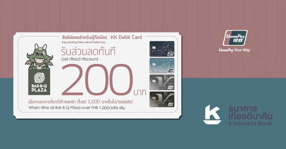 เกียรตินาคิน ส่วนลด kk debit card kk บาร์บีคิวพลาซ่า kk debit card unionpay bar-b-q plaza บัตรเดบิตธนาคารเกียรตินาคิน