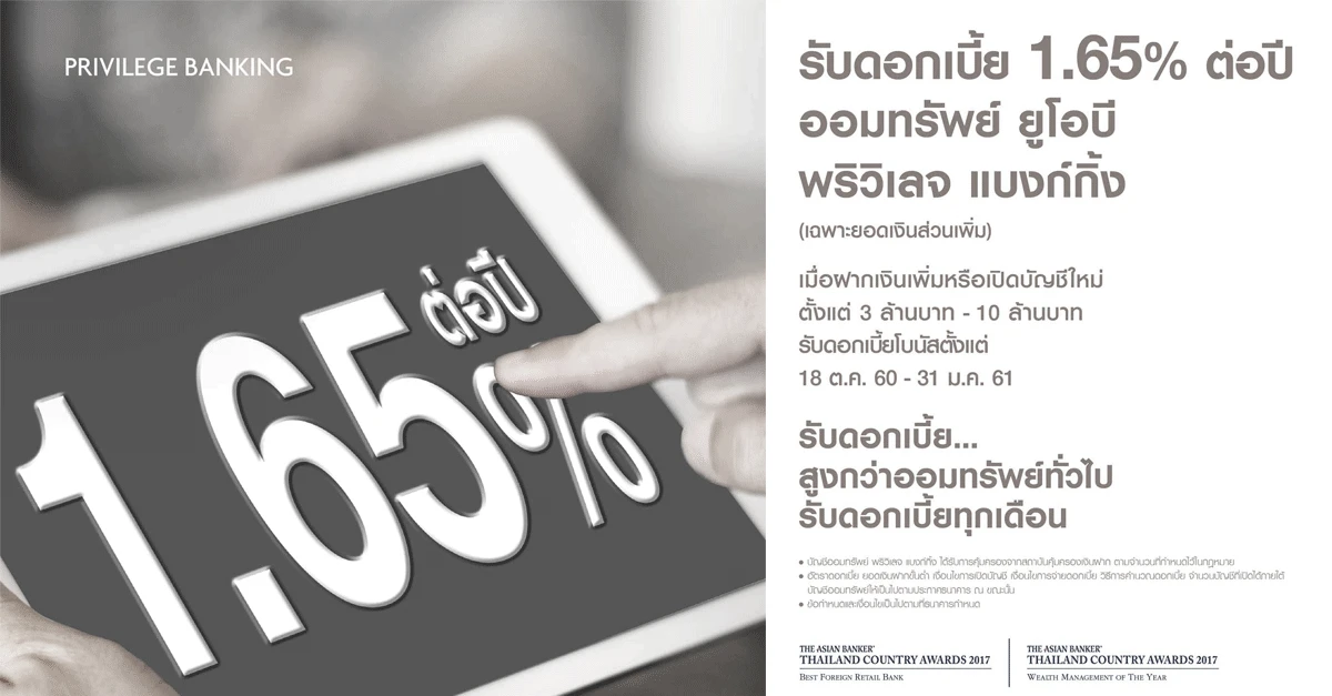 | การคำนวณดอกเบี้ยโบนัส (รายละเอียดการคำนวณดอกเบี้ยโบนัสแสดงใน website www.uob.co.th และประกาศของธนาคาร อัตราดอกเบี้ยปกติเมื่อรวมดอกเบี้ยโบนัส (อ้างอิงอัตราดอกเบี้ยปกติตามประกาศธนาคาร ลงวันที่ 17 ตุลาคม 2560) | |