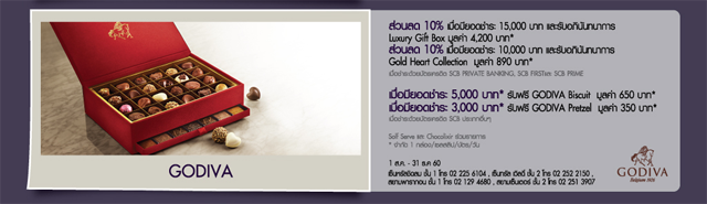 รับส่วนลด 10% เมื่อมียอดชำระตามที่กำหนด ที่ร้าน GODIVA