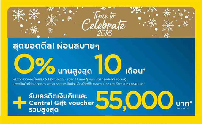 | เมื่อมียอดแบ่งจ่ายตั้งแต่/เซลล์สลิป | รับเครดิตเงินคืน | Central Gift Voucher |