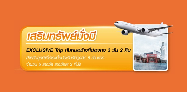 เงื่อนไขเฉพาะ - การเข้าร่วมแคมเปญ และการรับของรางวัลบินฟรีไปเสริมโชคสักการะสิ่งศักดิ์สิทธิ์ที่ฮ่องกง - รายการส่งเสริมการขายนี้เฉพาะเบี้ยประกันชีวิตปีแรก เมื่อสมัครผลิตภัณฑ์ประกันชีวิตประเภทสามัญผลิตภัณฑ์ใดก็ได้ และชำระเบี้ยประกันภัยสูงสุด 5 ท่านแรก จำนวน 5 รางวัล รางวัลละ 2 ที่นั่ง ในช่วงระยะเวลา 1 พ.ย. - 31 ธ.ค. 60 และได้รับการอนุมัติกรมธรรม์จากบริษัทฯ ภายในวันที่ 15 ม.ค. 61 และบริษัทฯ ได้รับแบบฟอร์มหลักฐานการส่งมอบกรมธรรม์จากลูกค้า ภายในวันที่ 5 ก.พ. 61