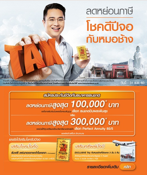 สมัครประกันชีวิตลดหย่อนภาษีกับธนาคารธนชาต และยังได้เสริมโชค เสริมทรัพย์รับปีจอกับหมอช้าง