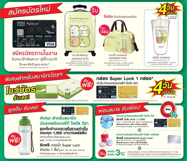 - ผ่อน 0% ผ่านบัตรสินเชื่อเทสโก้ โลตัส พรีเมียร์ รับฟรี ชุดถนอมอาหาร Super Lock 1 ชุด เมื่อมียอดผ่อนชำระ 5,000 บาทขึ้นไป/ เซลล์สลิป
