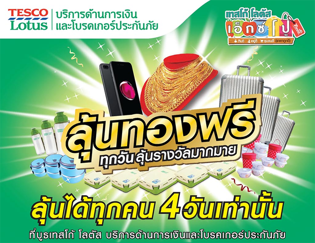 เทสโก้ โลตัส เอ๊กซ์โป' 60 ลุ้นทองฟรีทุกวัน ลุ้นรางวัลมากมาย 9 - 12 พ.ย. นี้ 4 วันเท่านั้น! ที่บูธเทสโก้ โลตัส