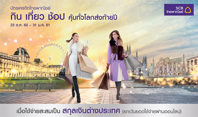 กิน เที่ยว ช้อป.. ส่งท้ายปี รับทั้งไมล์สะสม และเงินคืน เมื่อใช้จ่ายเป็นสกุลเงินต่างประเทศ ผ่านบัตรเครดิต SCB