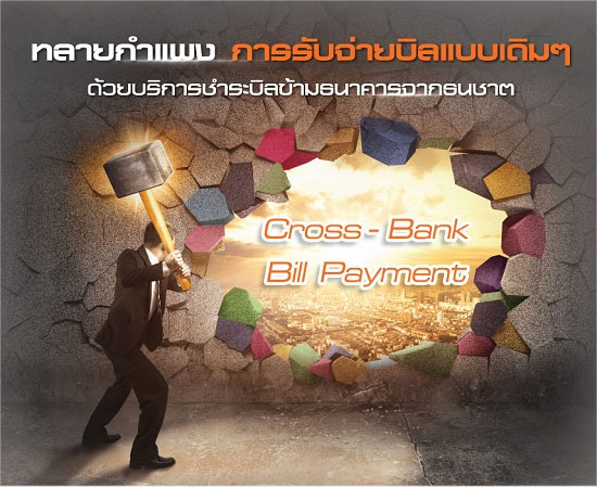 บริการชำระบิลข้ามธนาคาร Cross-Bank Bill Payment คือ บริการรับชำระค่าสินค้าและบริการสำหรับนิติบุคคล / ผู้ประกอบการ ช่วยให้บริษัท (Biller) มีช่องทางในการรับชำระบิลแบบข้ามธนาคารได้ โดยไม่จำเป็นต้องเปิดบัญชีกับทุกธนาคาร ลูกค้าผู้ชำระเงินสามารถชำระบิลได้จากช่องทางของหลายธนาคารที่ร่วมให้บริการโดยไม่จำเป็นต้องลงทะเบียนพร้อมเพย์
