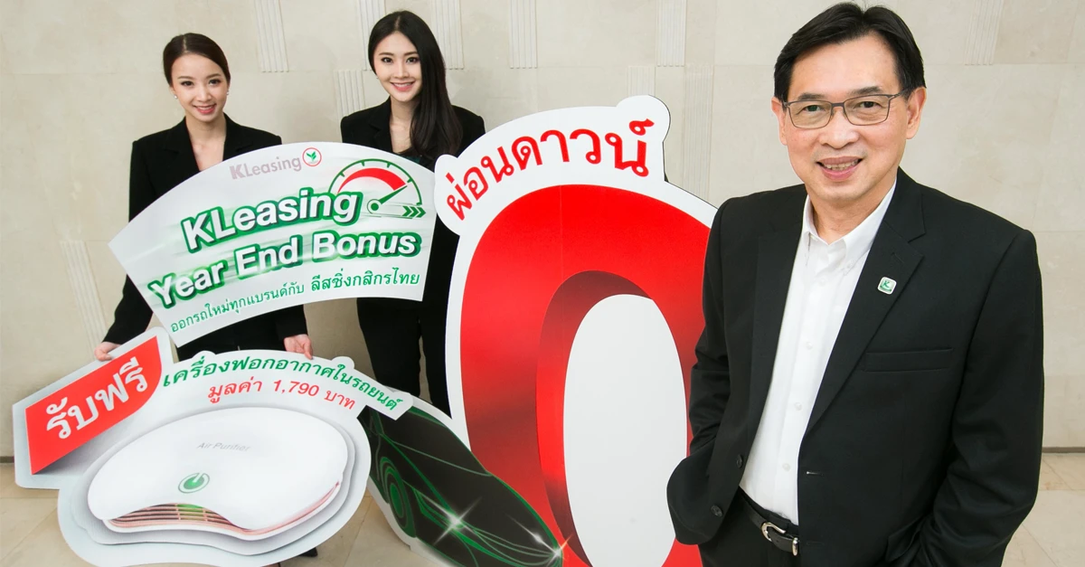 นายศาศวัต วีระปรีย ประธานกรรมการบริหาร บริษัท ลีสซิ่งกสิกรไทย จำกัด เปิดตัวแคมเปญ KLeasing Year End Bonus ต้อนรับมหกรรม Thailand International Motor Expo 2017  เมื่อสมัครสินเชื่อเช่าซื้อรถใหม่กับลีสซิ่งกสิกรไทย ระหว่างวันที่ 29 พฤศจิกายน - 11 ธันวาคม 2560 และออกรถภายใน 31 มกราคม 2561 รับสิทธิพิเศษดอกเบี้ยต่ำ 1.89%* ผ่อนดาวน์ 0%  สูงสุด 6 เดือนผ่านบัตรเครดิตกสิกรไทย พร้อมรับฟรี! เครื่องฟอกอากาศในรถยนต์ มูลค่า 1,790 บาท ที่บูธลีสซิ่งกสิกรไทยภายในงาน Motor Expo 2017 อิมแพ็ค เมืองทองธานี หรือ โชว์รูมผู้แทนจำหน่ายรถยนต์ทั่วประเทศ