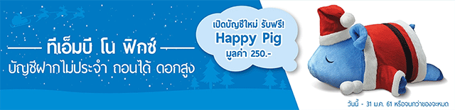 เปิดบัญชี ทีเอ็มบี โน ฟิกซ์ ตั้งแต่ 10,000 บาทขึ้นไป รับฟรี! Happy Pig มูลค่า 250 บาท