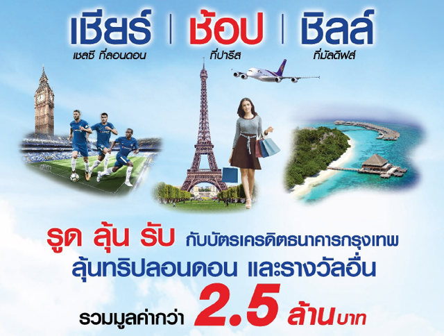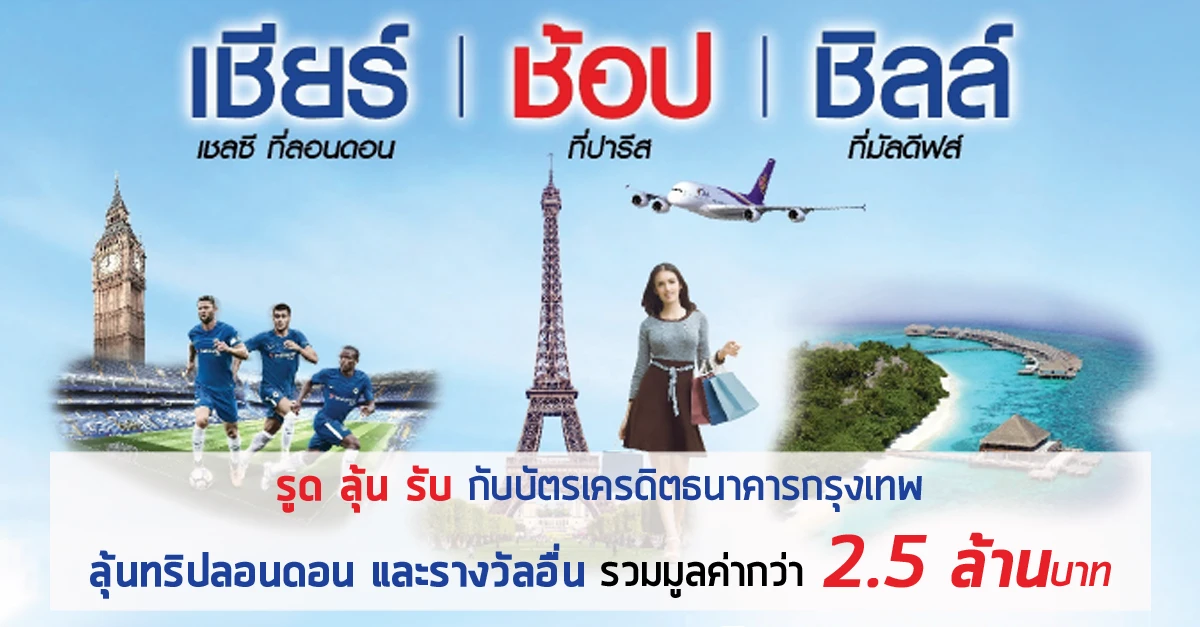 เชียร์ช้อปชิลล์ รูดลุ้นรับ กับบัตรเครดิตธนาคารกรุงเทพ ลุ้นทริปลอนดอน และรางวัลอื่น รวมมูลค่ากว่า 2.5 ลบ.