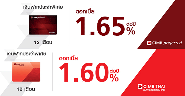 บัญชีเงินฝากประจำพิเศษ 12 เดือน อัตราดอกเบี้ย 1.65% ต่อปี สำหรับลูกค้า CIMB Preferred
