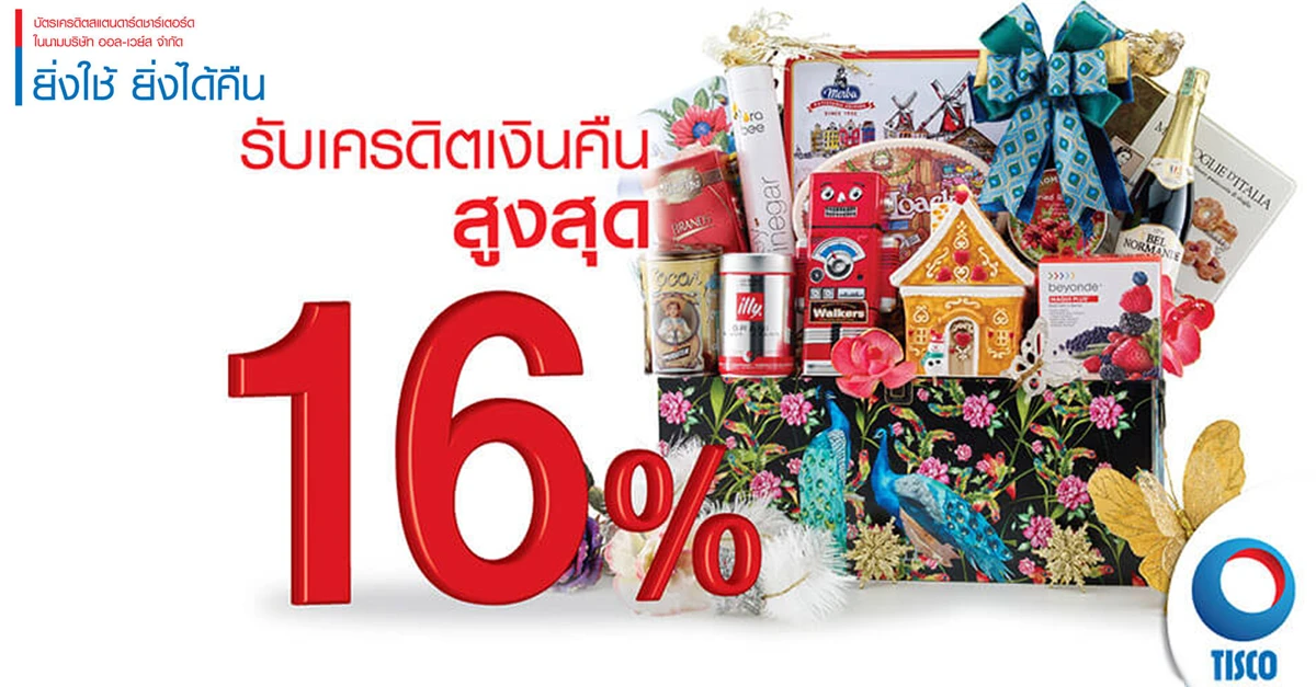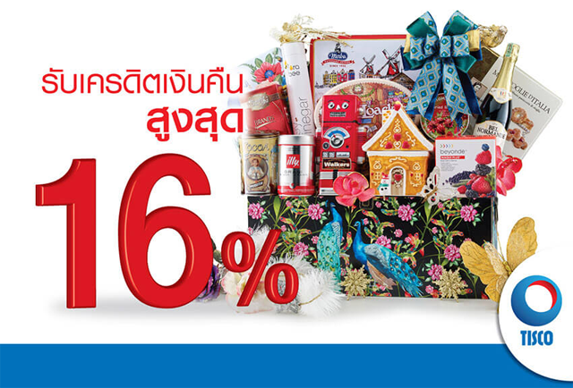 รับเครดิตเงินคืนสูงสุด 16% เมื่อซื้อกระเช้าของขวัญที่เซ็นทรัล ฟู้ด ฮอลล์ ท็อปส์ มาร์เก็ต, ท็อปส์ ซูเปอร์สโตร์, ซูเปอร์คุ้ม ท็อปส์ เดลี่ ทุกสาขา และ ท็อปส์ ออนไลน์ ผ่าน