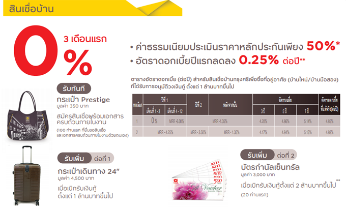 - สงวนสิทธิ์ในการมอบของกำนัลให้ลูกค้าตามลำดับการเบิกรับเงินกู้ ทั้งนี้การตัดสินของธนาคารถือเป็นที่สุด