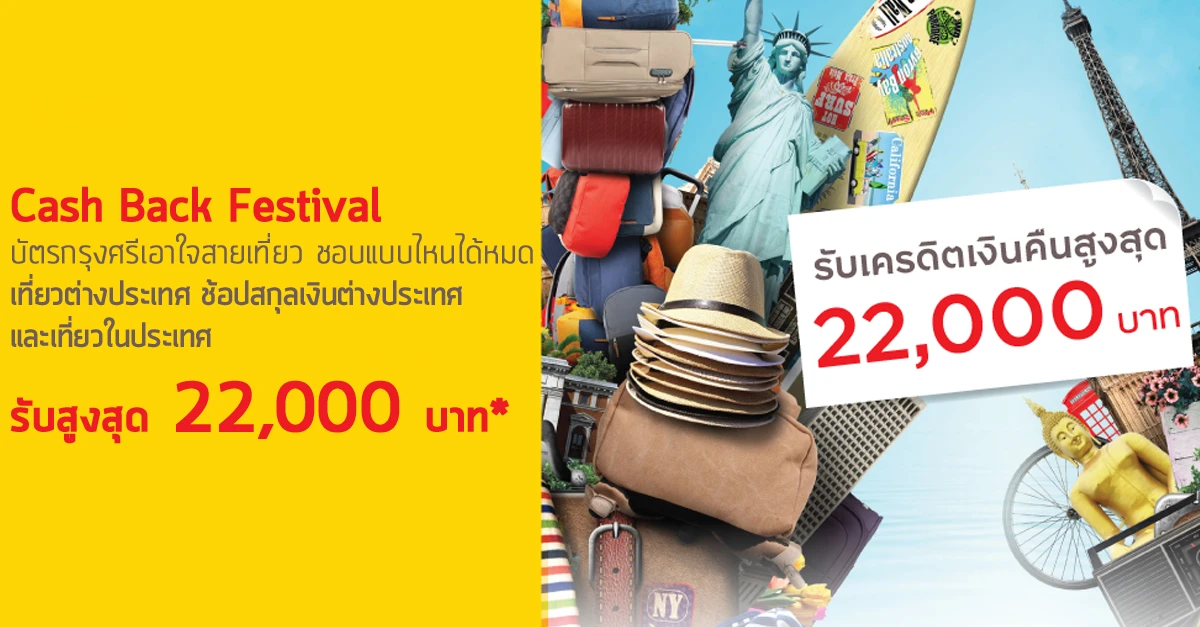 บัตรเครดิตกรุงศรี เอาใจสายเที่ยว.. รับเครดิตเงินคืนสูงสุด 22,000 บาท เมื่อใช้จ่ายในหมวดท่องเที่ยว