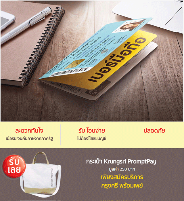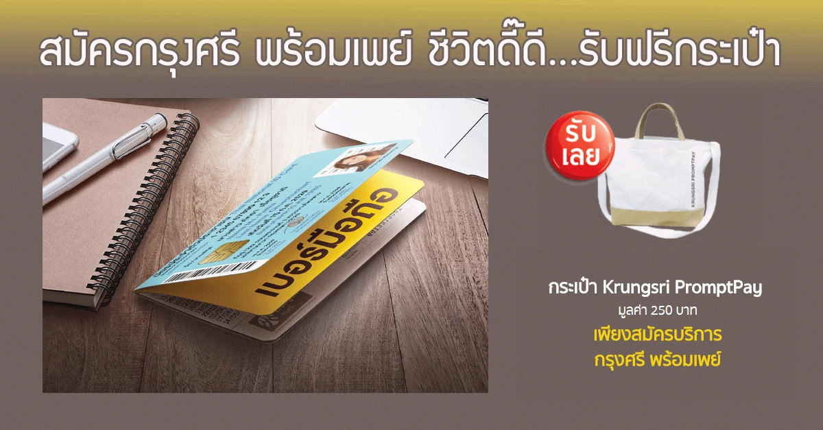 สมัครกรุงศรี พร้อมเพย์ ชีวิตดี๊ดี...รับฟรีกระเป๋า แค่ผูกบัญชีเงินฝากกรุงศรีกับหมายเลขประจำตัวประชาชนหรือเบอร์มือถือ