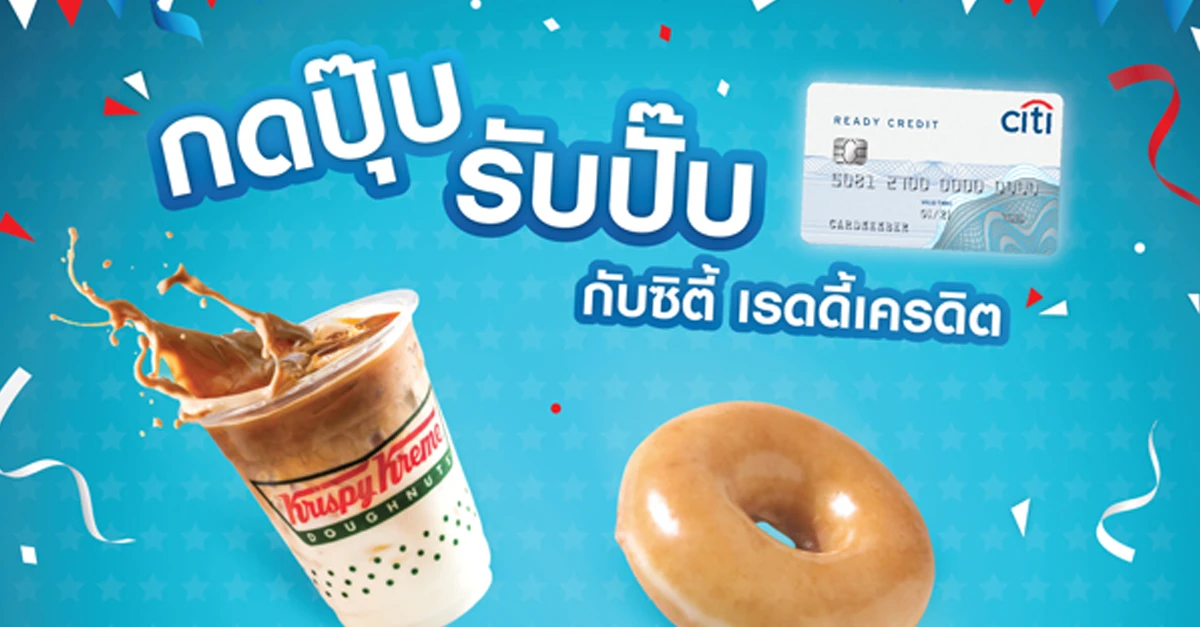 • สมาชิกบัญชีซิตี้ เรดดี้เครดิต รับฟรี ชีสเบอร์เกอร์ 1 ชิ้น มูลค่า 109 บาท จาก Burger King หรือจ่ายเพียง 1 บาท รับโดนัท Original Glazed 1 ชิ้น + เครื่องดื่ม 1 แก้ว (ลาเต้เย็น หรือชาเขียวเย็น) มูลค่า 122 บาท จาก Krispy Kreme
