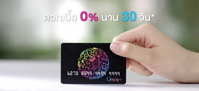 รับดอกเบี้ย 0% นาน 30 วัน เมื่อสมัครบัตรกดเงินสดยูเมะพลัส วันนี้ - 31 มีนาคม 2561