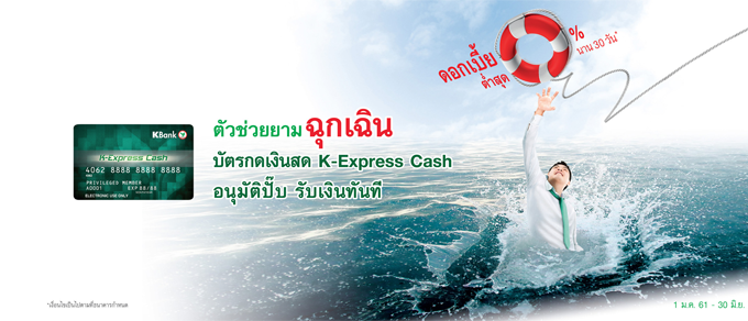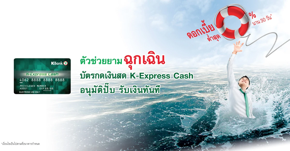 | ตั้งแต่ 240,001 บาทขึ้นไป | 20% | 10% | 1) สมัครบัตรกดเงินสด K-Express Cash 2) สมัครบริการเงินสดโอนไว Cash Day 1 |