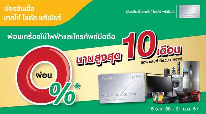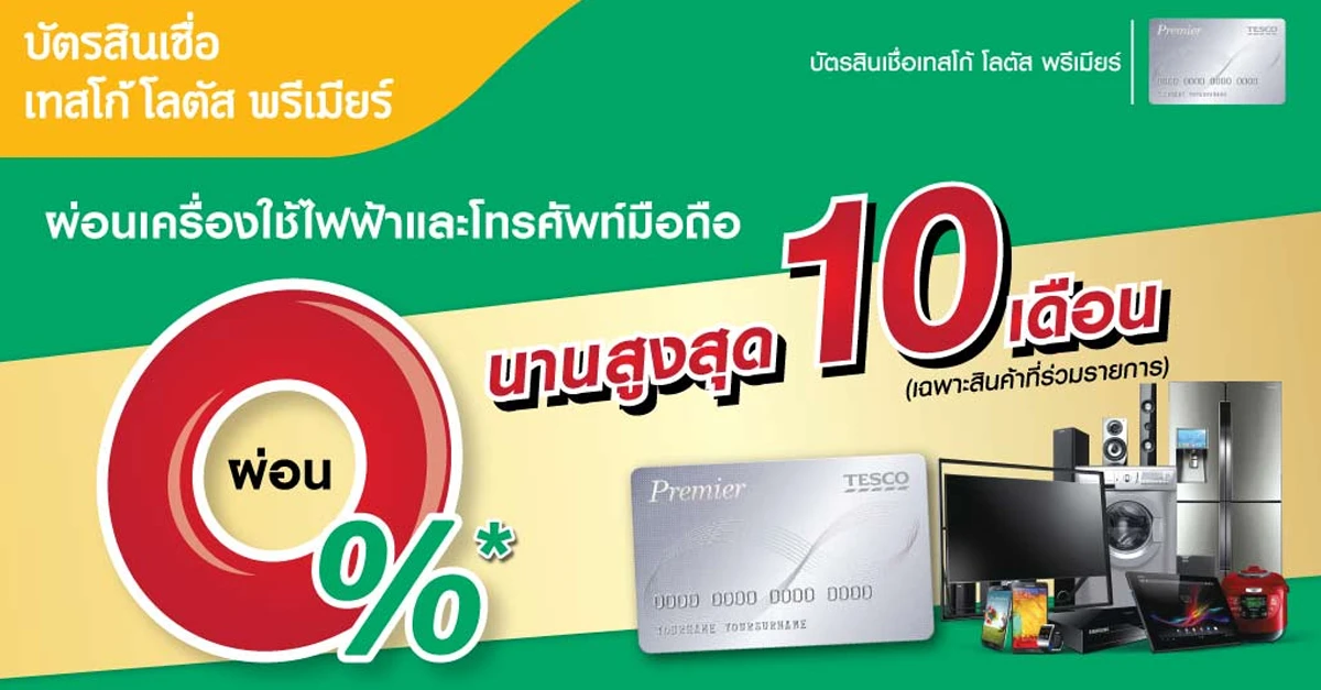 ผ่อนเครื่องใช้ไฟฟ้า และโทรศัพท์มือถือ 0% 10 เดือน ผ่านบัตรสินเชื่อเทสโก้โลตัส พรีเมียร์ ที่เทสโก้ โลตัส