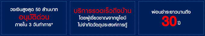 - อนุมัติวงเงินขั้นต่ำ 500,000 บาท และสูงสุดถึง 50,000,000 ล้านบาท ( 15-30 ล้านบาท สำหรับต่างจังหวัด)