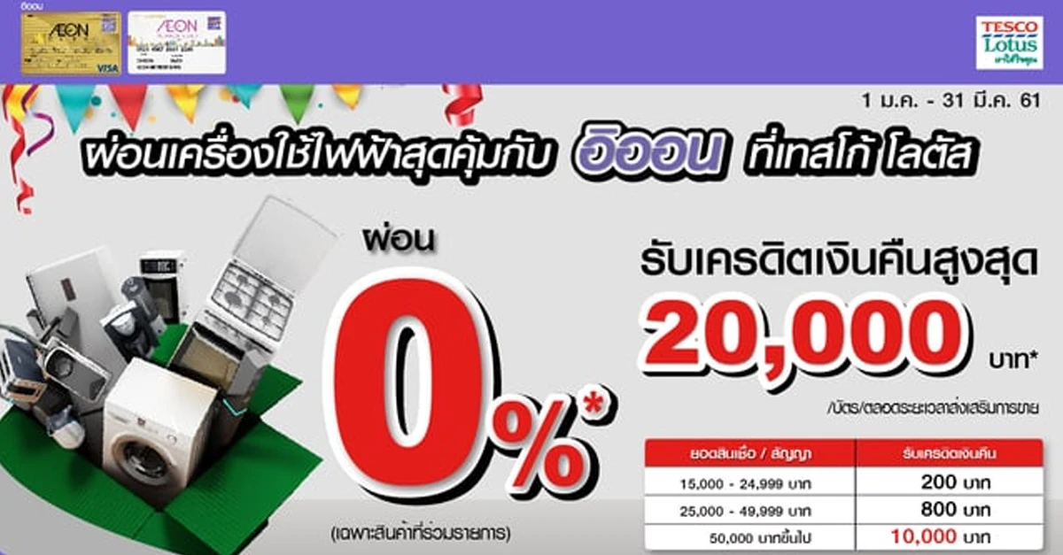 ผ่อนเครื่องใช้ไฟฟ้าสุดคุ้มกับอิออนที่เทสโก้ โลตัส รับเครดิตเงินคืนสูงสุด 20,000 บาท