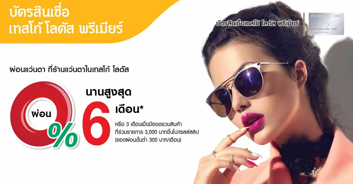 บัตรเทสโก้ โลตัส พรีเมียร์ รับสิทธิพิเศษที่ร้านแว่นตาชั้นนำ ผ่อน 0% นานสูงสุด 6 เดือน