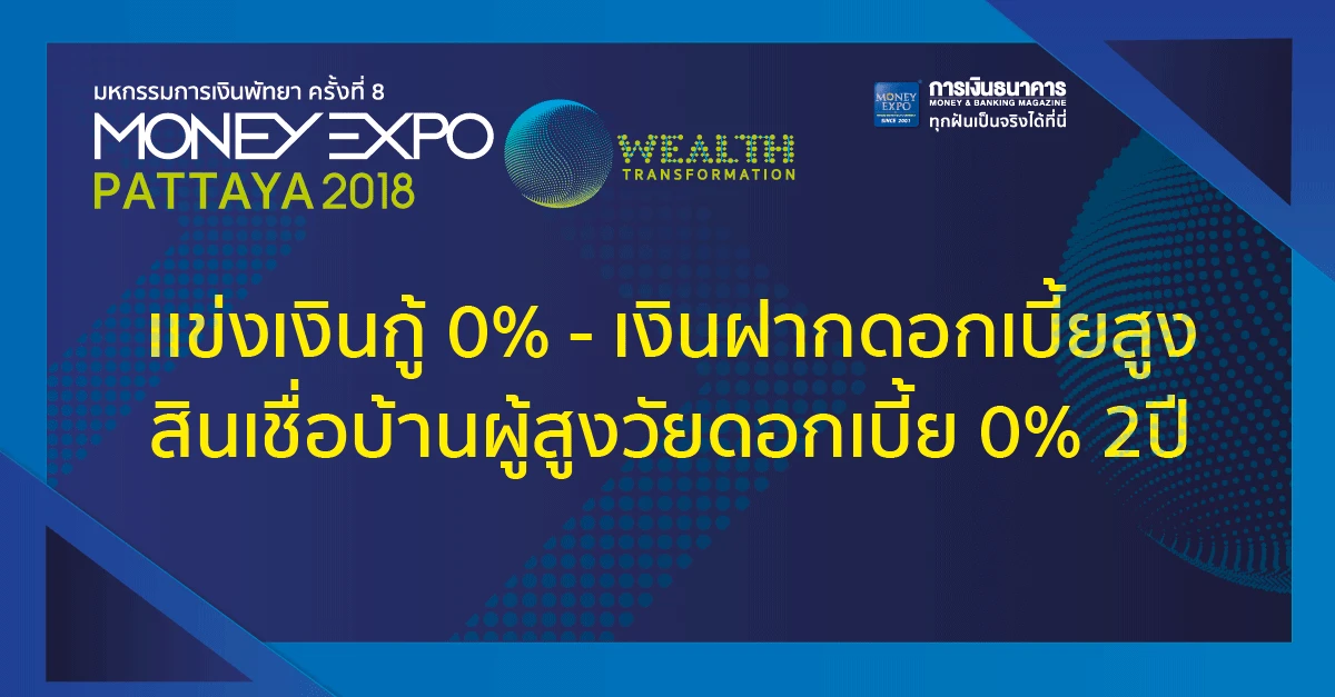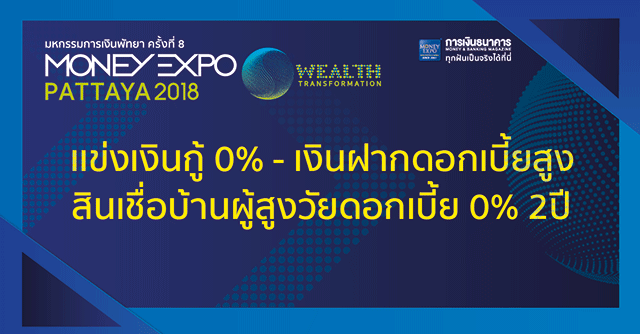 Money Expo Pattaya 2018 แข่งเงินกู้ 0% - เงินฝากดอกเบี้ยสูง สินเชื่อบ้านผู้สูงวัยดอกเบี้ย 0% 2 ปี