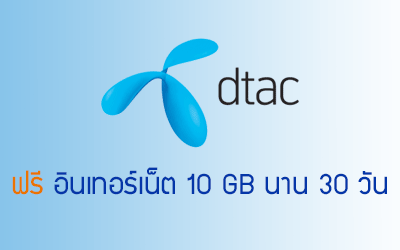 พิเศษ รับฟรี ดีแทค อินเทอร์เน็ต 10 GB รับดีแทค อินเทอร์เน็ต 10 GB (ใช้งานได้ 30 วัน) มูลค่า 699 บาท เพียงกดรับสิทธิ์ แล้วกรอกเบอร์โทรศัพท์ดีแทคใดก็ได้ที่ต้องการรับอินเทอร์เน็ตเพิ่ม