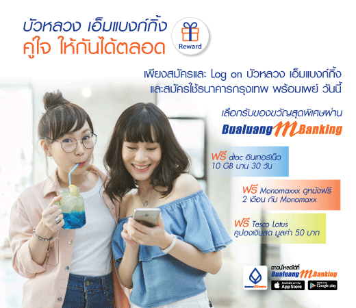 - สมัครและเข้าใช้บริการบัวหลวง เอ็มแบงก์กิ้งครั้งแรก ระหว่างวันที่ 1 ก.พ. 2561 - 31 มี.ค. 2561 และ