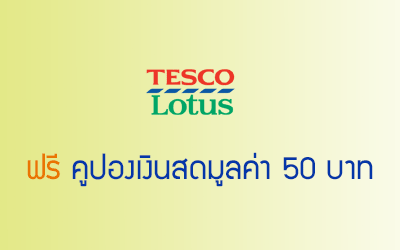 พิเศษ รับฟรี! คูปองเงินสด เทสโก้ โลตัส มูลค่า 50 บาท เพียงกดรับสิทธิ์ แล้วแสดงบาร์โค้ชให้กับร้านค้าเพื่อชำระสินค้า