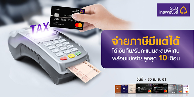จ่ายภาษีมีแต่ได้ ทั้งเงินคืน / คะแนนสะสมพิเศษ พร้อมแบ่งจ่ายสูงสุด 10 เดือน สิทธิพิเศษจากบัตรเครดิต SCB
