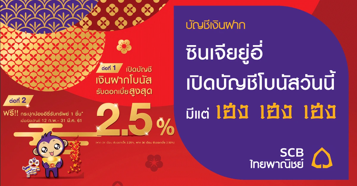 เปิดบัญชีโบนัสกับ ธนาคารไทยพาณิชย์ วันนี้ มีแต่ เฮง เฮง เฮง
