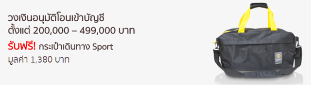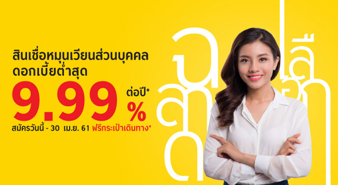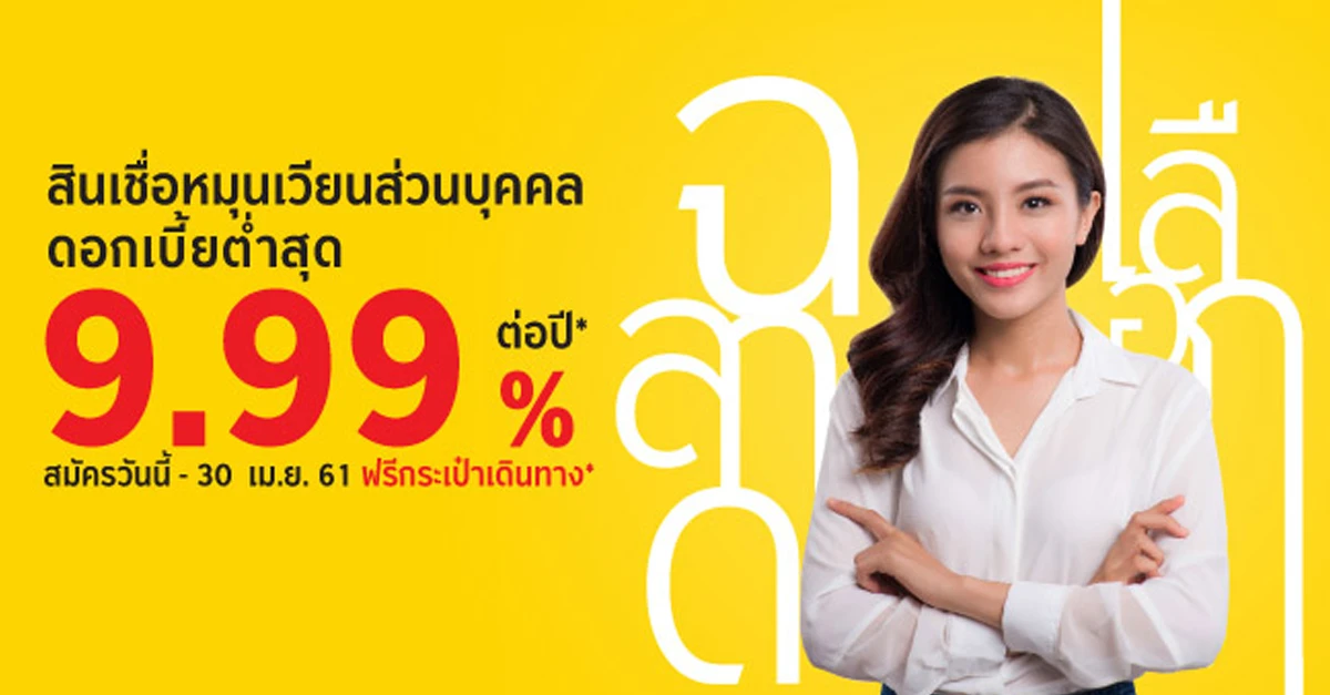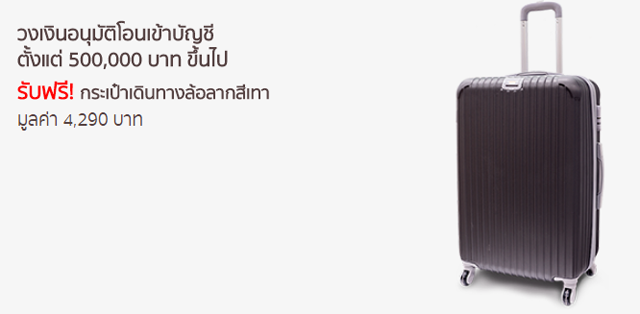 ดอกเบี้ยต่ำสุด 9.99% จากสินเชื่อหมุนเวียนส่วนบุคคล ธ.กรุงศรีฯ สมัครวันนี้ ฟรี! กระเป๋าเดินทาง