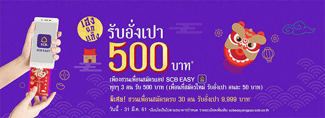 เฮงยกแก๊ง! ชวนเพื่อนสมัคร SCB EASY App วันนี้ รับอั่งเปาเลขมงคล สูงสุด 9,999 บาท