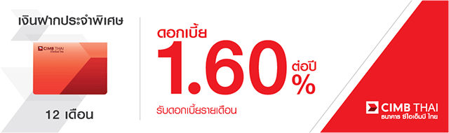 โปรโมชั่นเงินฝากดอกเบี้ยสูง กับบัญชีเงินฝากประจำพิเศษ 6, 12 เดือน จากธนาคารซีไอเอ็มบี ไทย