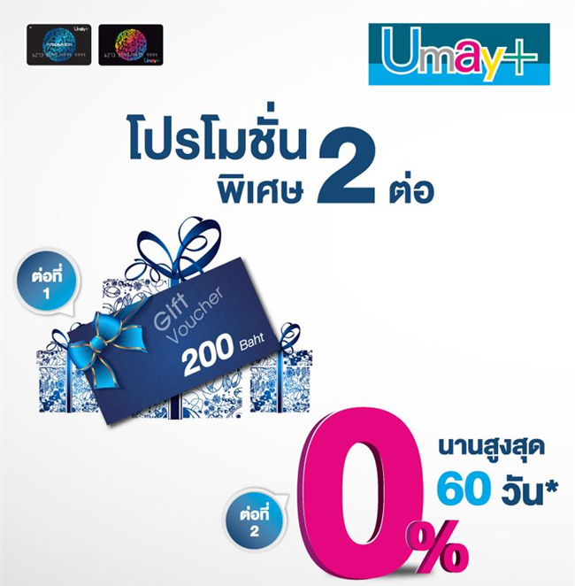 รับไปเลย! "บัตรของขวัญมูลค่า 200 บาท" เพียงลงทะเบียนสมัครบัตรกดเงินสดยูเมะพลัสออนไลน์ ... และยื่นเอกสารการสมัครเพิ่มเติม ณ สาขายูเมะพลัส >> เอกสารประกอบการสมัคร